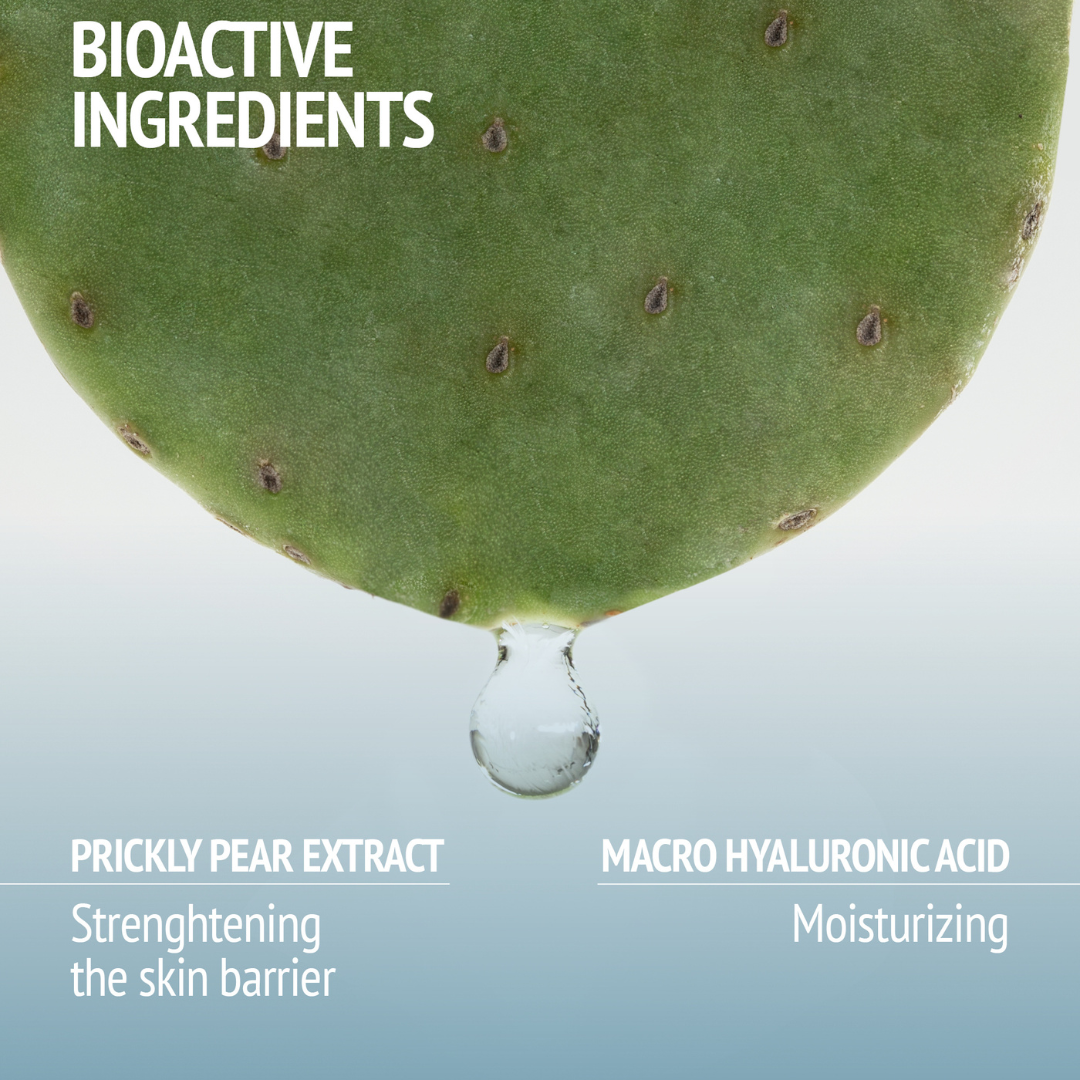 A desert plant's extract thriving in the harshest environments. This cactus comes from a regenerative organic agriculture cultivation in Apulia in southern Italy. It helps strengthen the skin barrier (+39% KGF Keratynocites Growth Factor*), counteracting skin dehydration.